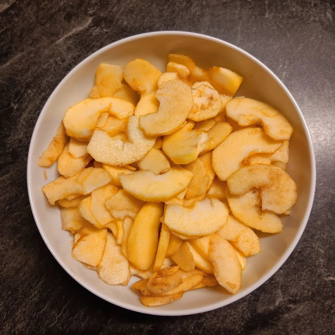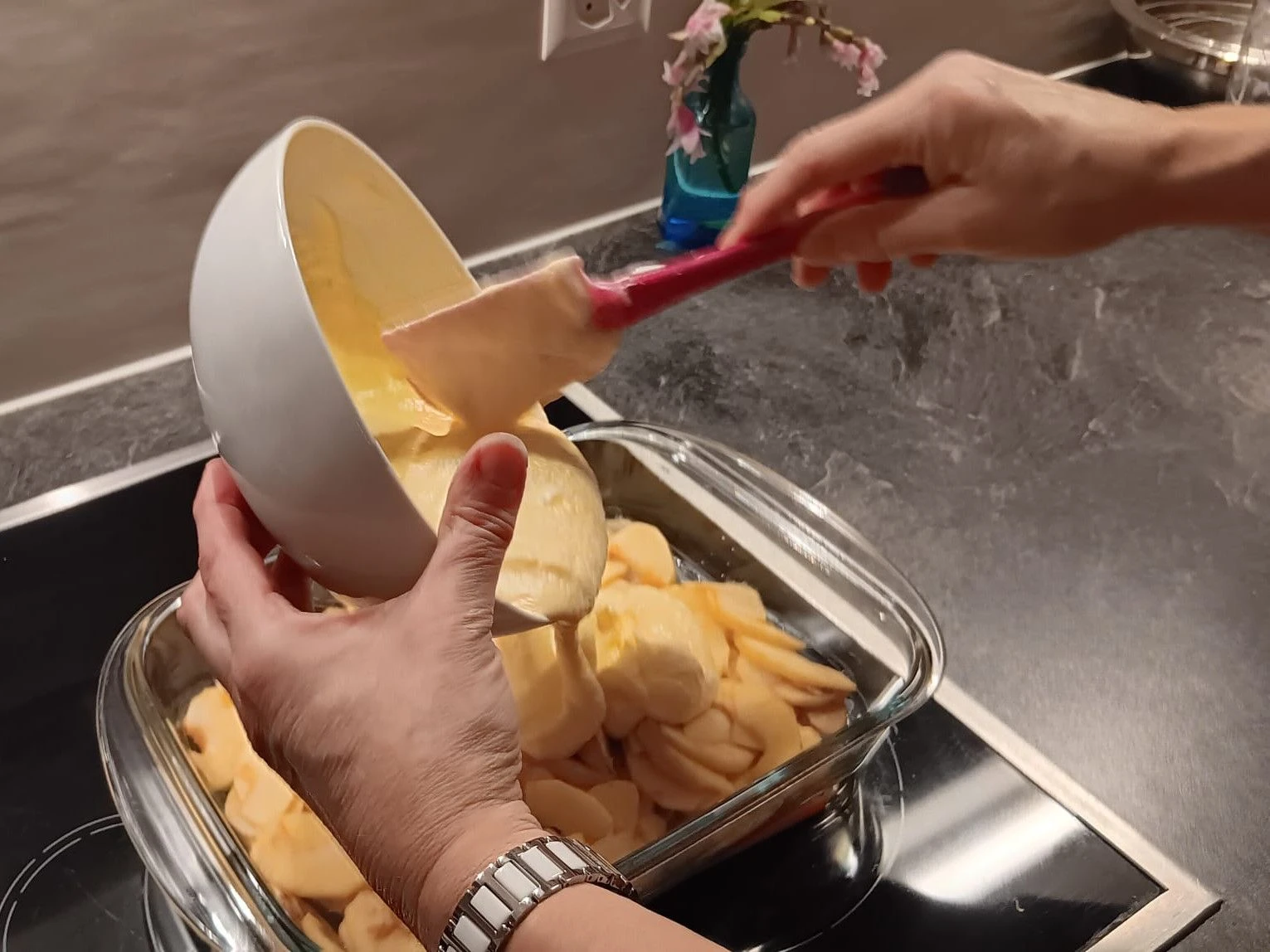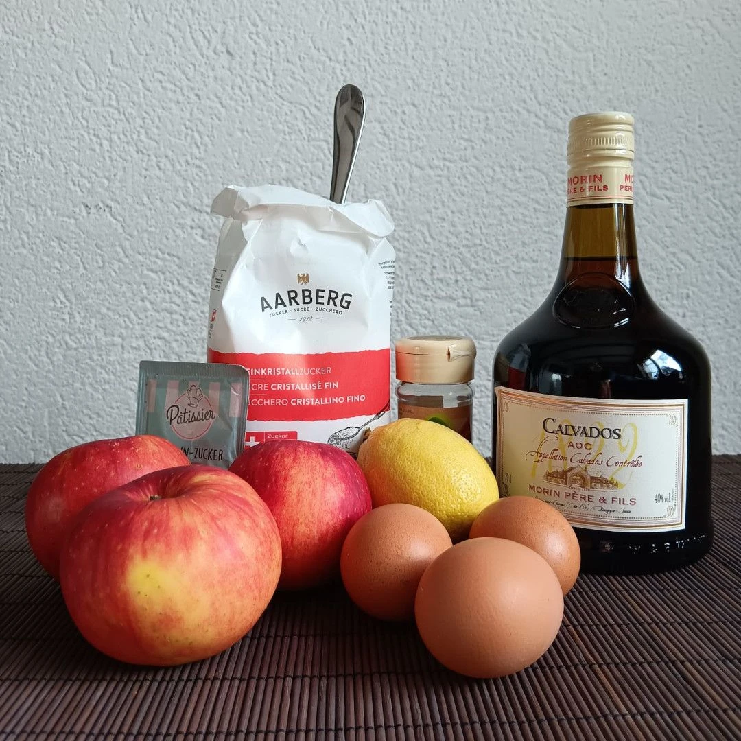 1. Äpfel in Schnitzli schneiden, mit Zucker, Zimt und Calvados mischen. Butter in eine Gratinform von ca. 2 Litern geben, in der Mitte des auf 200 Grad vorgeheizten Ofens schmelzen. Danach die Apfelschnitzli auf der Butter verteilen und zugedeckt ca. 15 Minuten backen.