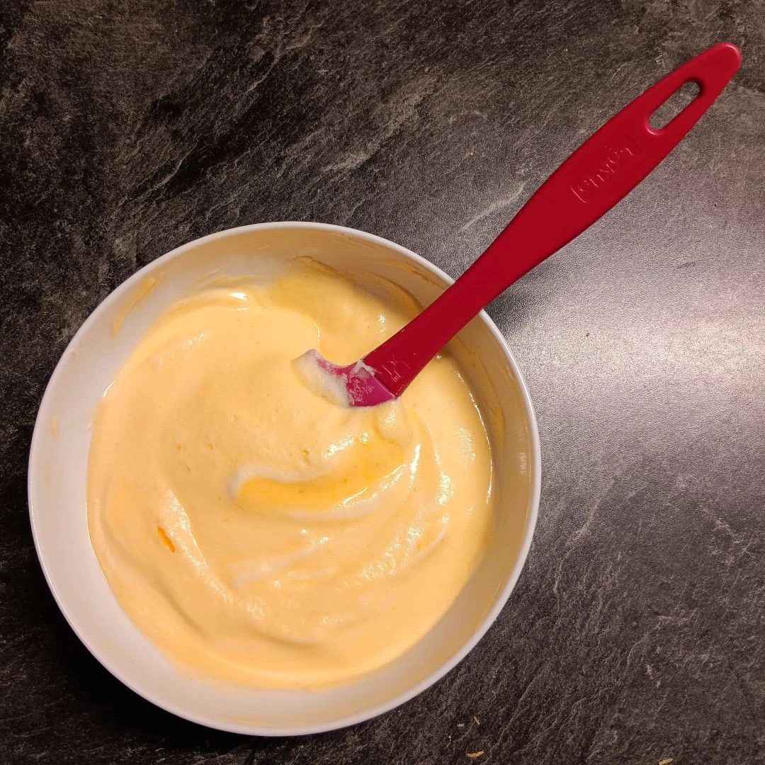 2. Eigelbe und Zucker mit dem Schwingbesen verrühren, bis eine helle Masse entsteht. Zitronenschale dazureiben, Saft dazupressen, Vanillezucker und Mehl beigeben, mischen.