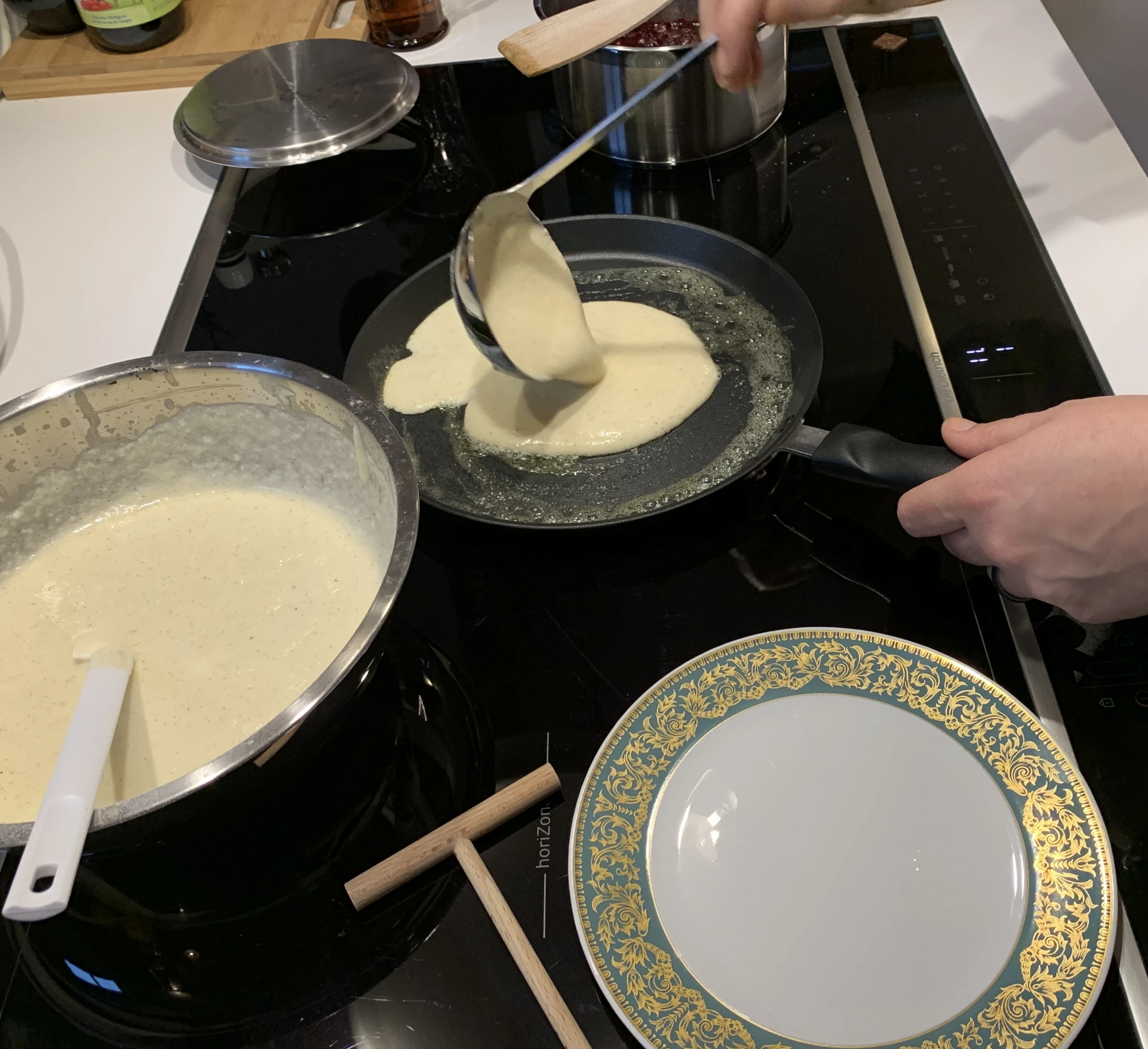 Bratpfanne mit Butter erhitzen und Omeletten goldbraun braten.