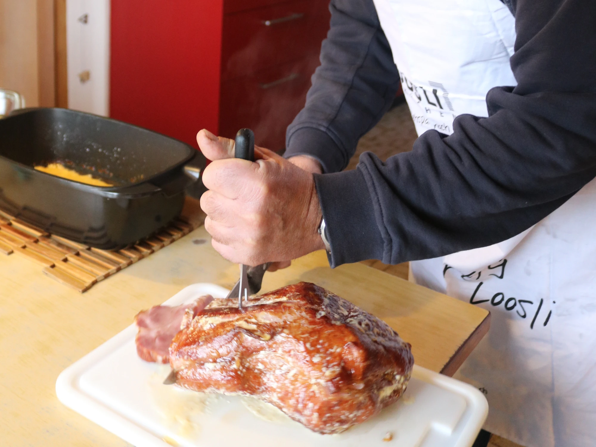 Den Braten vor dem Tranchieren ca. 10 Minuten stehen lassen.