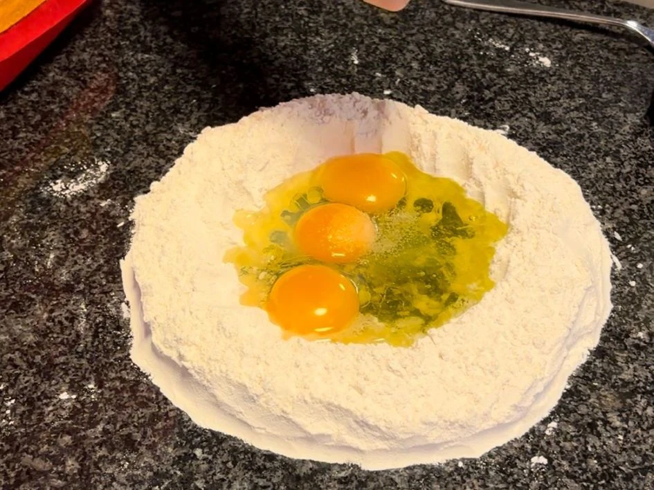 Teig auswallen, bis er durchscheinig ist, dies geht am besten mit einer Pastamaschine.