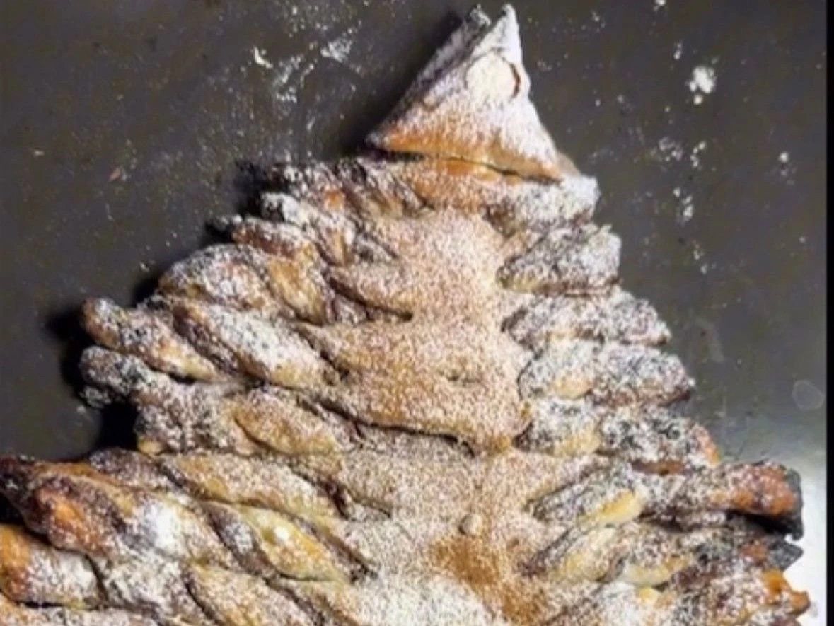 5. Den Nutella-Tannenbaum im vorgeheizten Ofen ca. 12-15 Minuten goldbraun backen. Den Tannenbaum nach Belieben mit Puderzucker bestreuen.