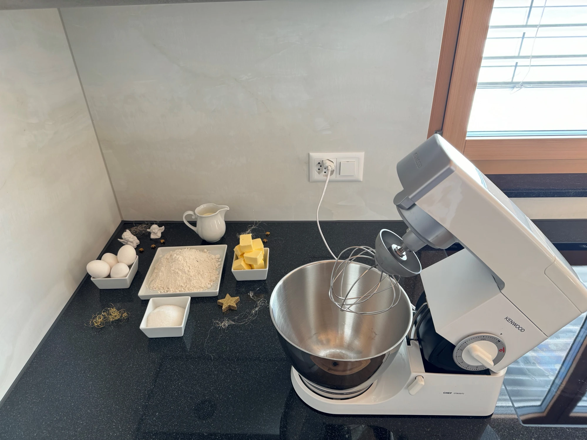 Butter in die Schüssel geben und rühren bis sich Spitzchen bilden.