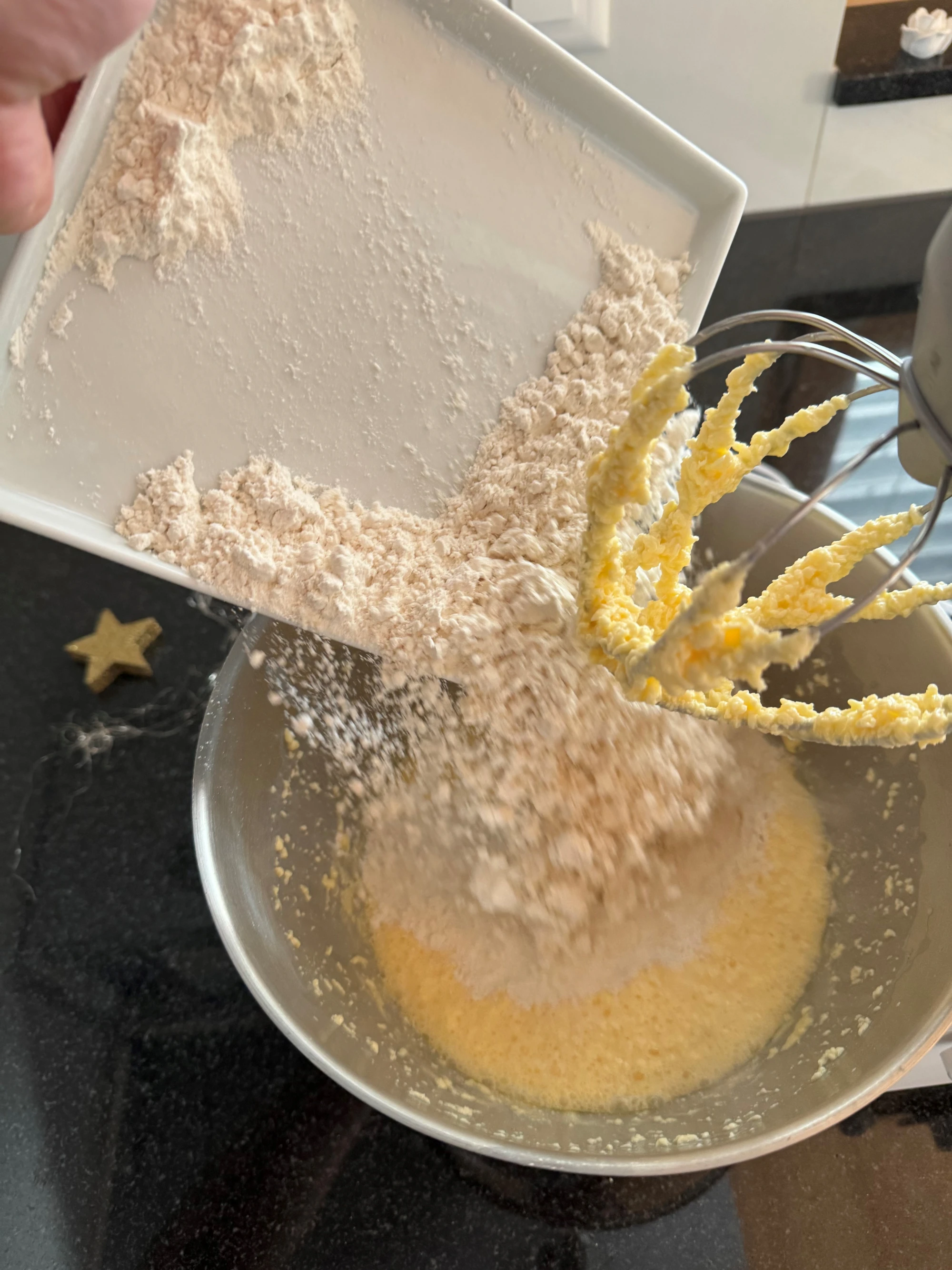 Mehl dazugeben und rühren bis der Teig schön geschmeidig ist.
