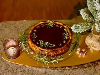 5. Glühwein mit Tortenguss und Erythrit in einen Kochtopf geben und verrühren. Unter Rühren kurz aufkochen und dann auf dem ausgekühlten Käsekuchen verteilen. Trocknen lassen. Vor dem Servieren mit gezuckerten Cranberries und Rosmarin nach Belieben verzieren.