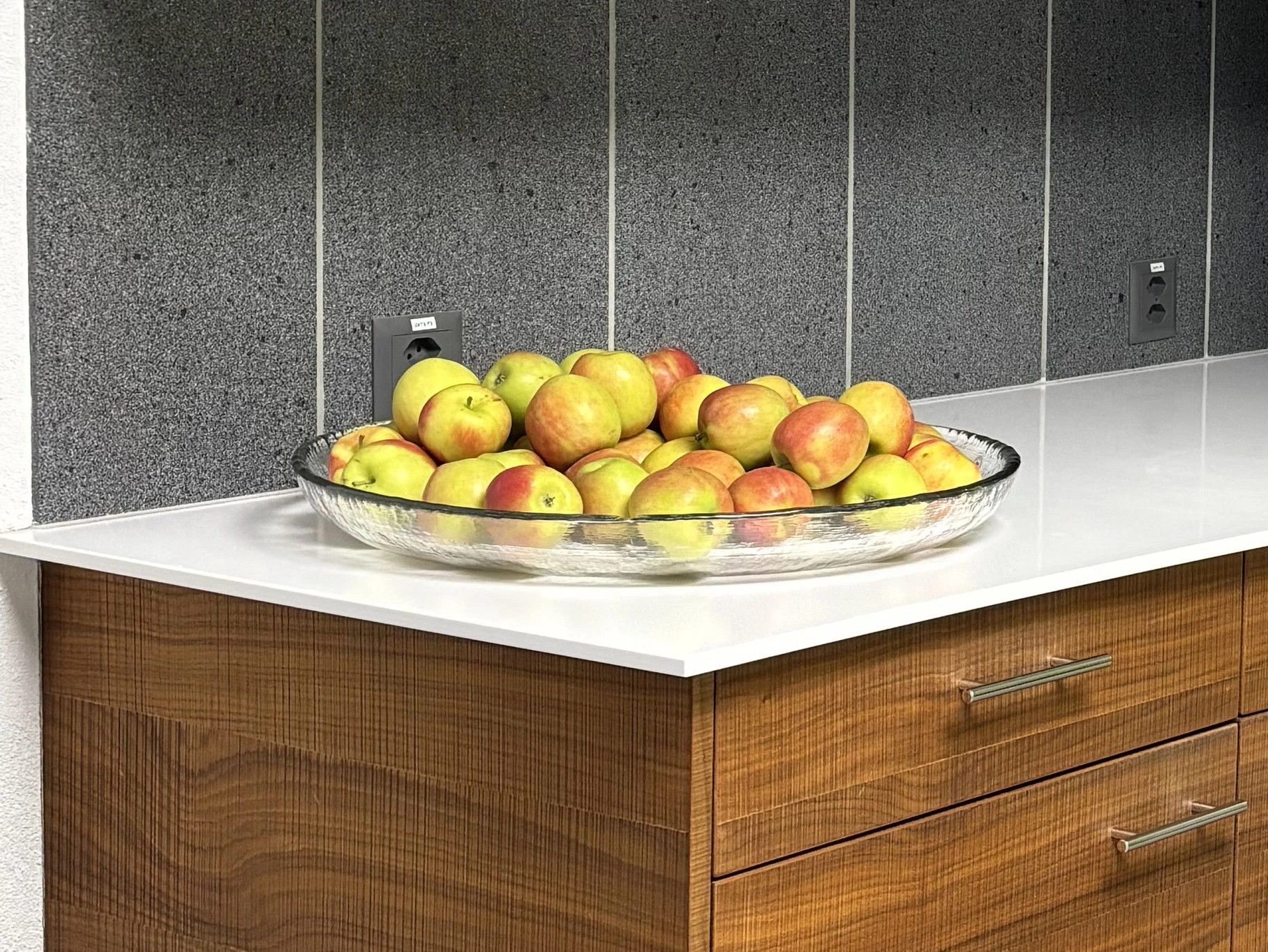 - Gratis Äpfel: Jede Woche liefert der Früchtelieferant frische Äpfel für die Mitarbeitenden.